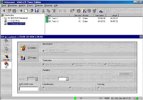 Das im Quellfenster ausgewählte CD-Laufwerk wird
